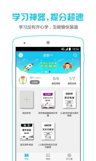 3、开心学新增答题模板、学习方法、答题技巧等书本。找准方法,提分更快。