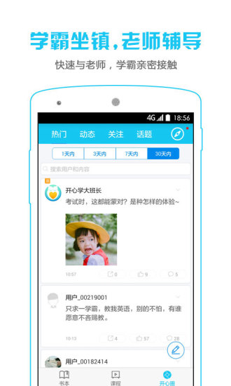 4、趣味:学习很枯燥,乏味那就来开心圈,与老师,学霸亲密接触,带动你的学习乐趣,共同学习,一起开心学。