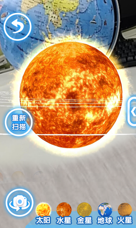AR地球仪采用了球面识别技术和跟踪技术及4D渲染技术,能够准确定位和跟踪实体地球仪的空间方位。一分钟带你游遍七大洲八大洋八大行星!带你上山入海,亲临地理气象的爆发中心,让你更直观的了解整个世界,还能与动物们合影到动,真实体验太阳系八大行星的天体运行模式,犹如身在宇宙,体验星球在你身边环绕的神奇景象。