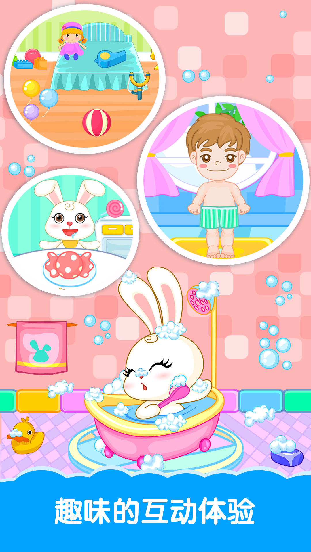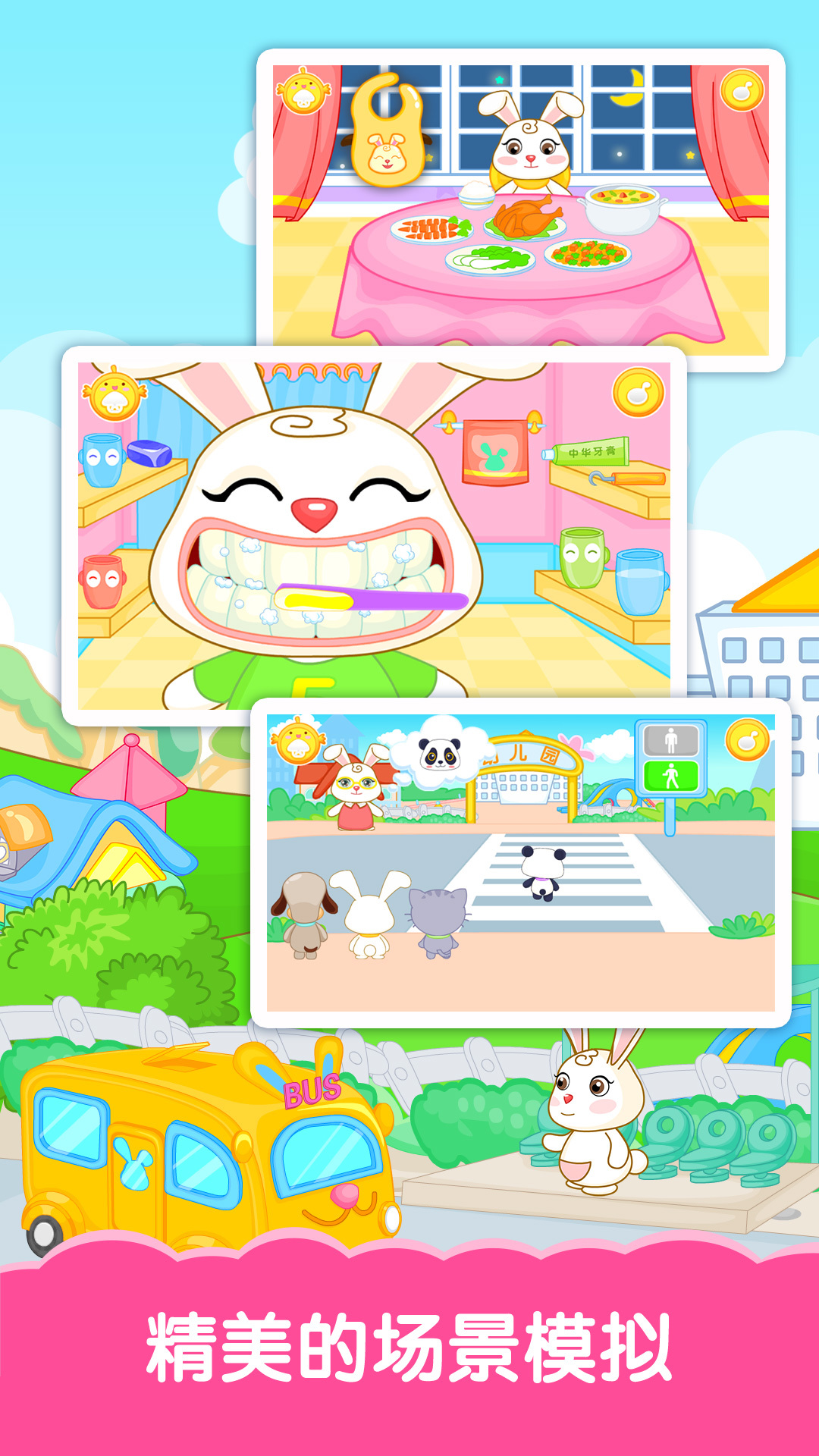 巴宾兔根据宝宝身心发展特点和学习规律,从宝宝的日常生活和学习特点出发,打造这款儿童教育应用。本应用从生活性、趣味性以及启蒙性等方面着手,让宝宝在使用中学习知识,激发学习兴趣,体会生活经验,培养良好习惯。