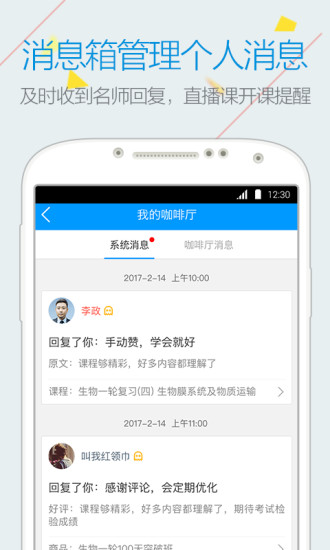 1.谈论教室。每天晚上都有真正的老师在身边回答问题,你不懂的问题,难以解决的想法,以及提高分数的障碍。老师会为你一个一个地打破它们!