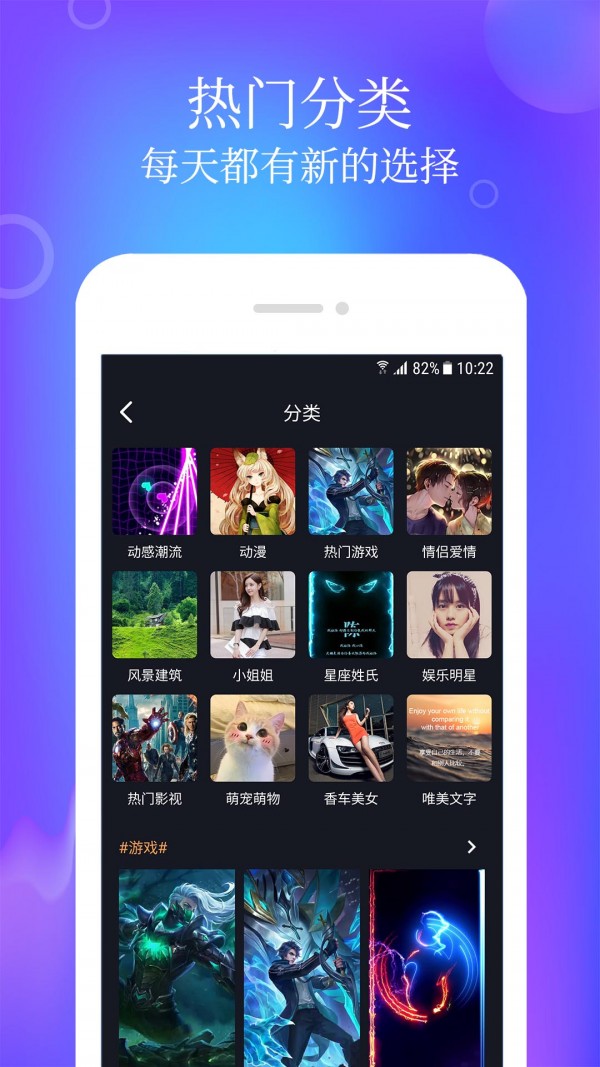 海量高清动态壁纸、来电主题,精心挑选娱乐明星、网络红人、卡通动漫、影视大全、动物萌宠、热门游戏等多种动态壁纸资源。
