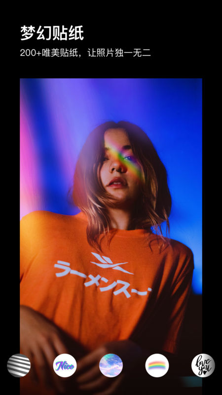 超200款流行贴纸任你挑选。使用光效贴纸,轻松打造梦幻神奇效果。