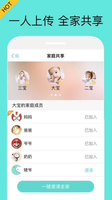 可一键邀请全家,一人记录,全家共享,育儿不孤单!