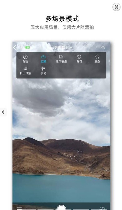 【五大场景】提供多场景选择:自动、云彩、城市夜景、星空、日出日落、鲜花、手动,拍出大片简直so easy!