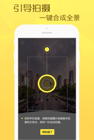 3、引导拍摄,一键合成全景;