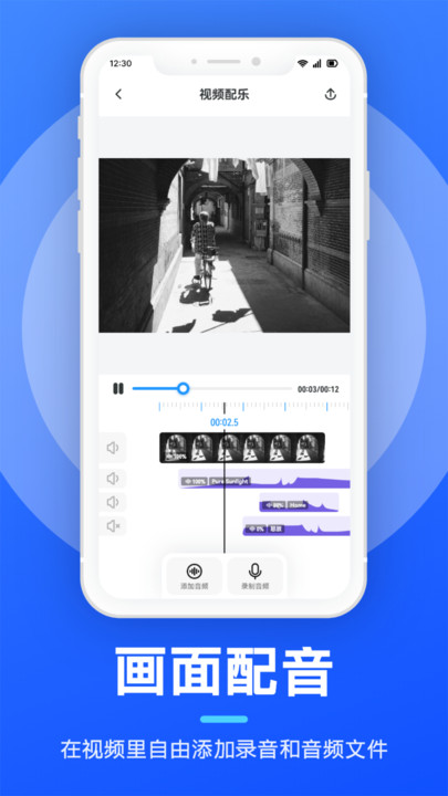 3、允许用户添加背景音乐、解释音频,并将音频调整到最佳音量和平衡。