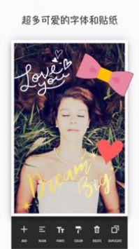 2、贴纸文字,众多精美的贴纸和特效文字等你来使用,为你的图片添加各种个性元素。