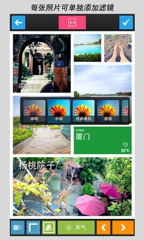 【单个图片编辑】拼图里的每张图片,均可添加文字、滤镜。