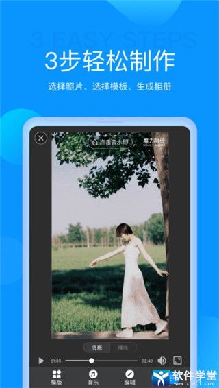 1、一键运用,三步轻轻松松制做精致动感相册、相册视频、视频相册、小视频、朋友圈小视频、手机微信业务流程相册图片、企业形象宣传相册图片、生日卡邀请信等。