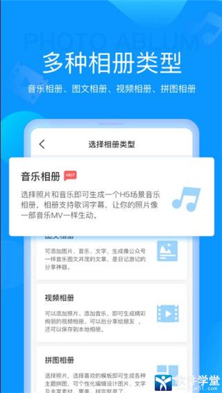 相信大家手机里有美美的照片是不是没地方放呢,不舍得删但是有很占内存,那大家啦看看这款魔力相册软件吧,这款软件有很多相册模板,能够帮助用户定制专属相册,用户只需要把自己的照片进行简单的上传,软件就可以自动为用户生成精美手机相册,打造专属自己的音乐相册。