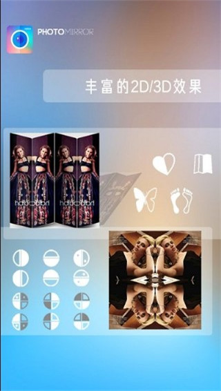 1、快速美化:从图库或相机选择一个图片,只需轻点几下,就能得到最好的镜像图片效果。