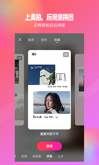 这款软件非常强大,各种滤镜让我们选择,绝对可以拍出好看的我们!这美拍相机是一款美图秀秀旗下的滤镜相机软件,相信很多女性用户都喜欢用这样的软件进行拍照,其具备素颜自拍、时尚妆容、随心试妆、领先技术、美妆秘籍五大特色功能,能够让你一秒拥有自然美妆,是美女们必备的相机软件。美拍相机在这里拥有超好看的短视频,超好玩的逗比短视频,超好玩的功能特色,功能强大升级,可以边拍摄视频边放音乐,玩转对嘴假唱释放你的演绎天性。