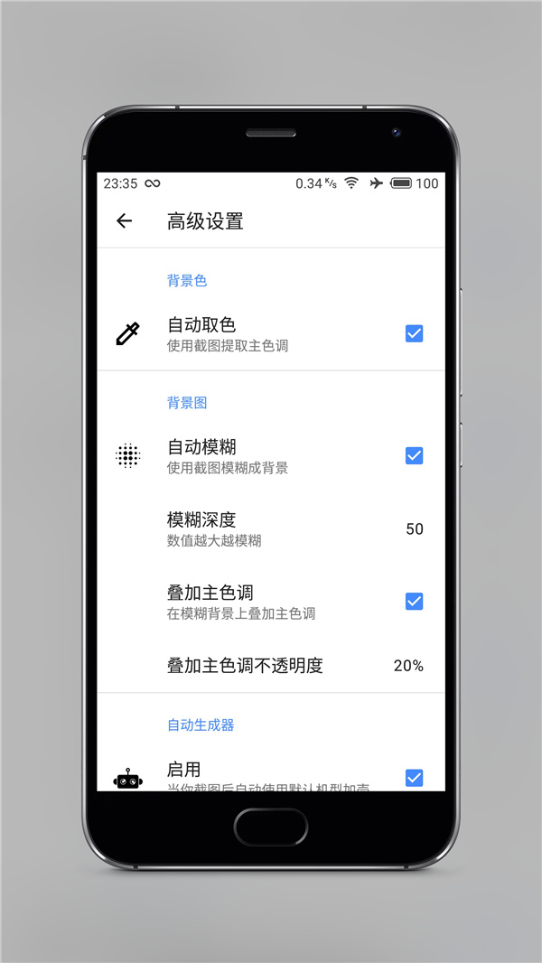 4、自动化特效,支持自动从截图中提取,主题色或者高斯模糊填充背景