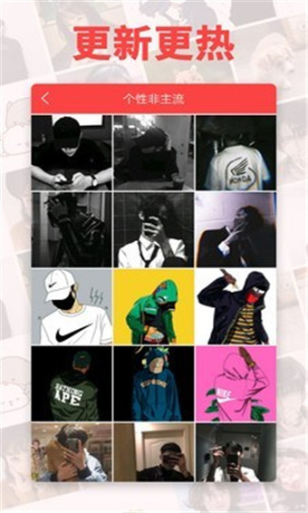 3、提供10大分类,200多个子类,分类清晰明确,快速定位自己的爱好。让你的头像与众不同,个性十足。
