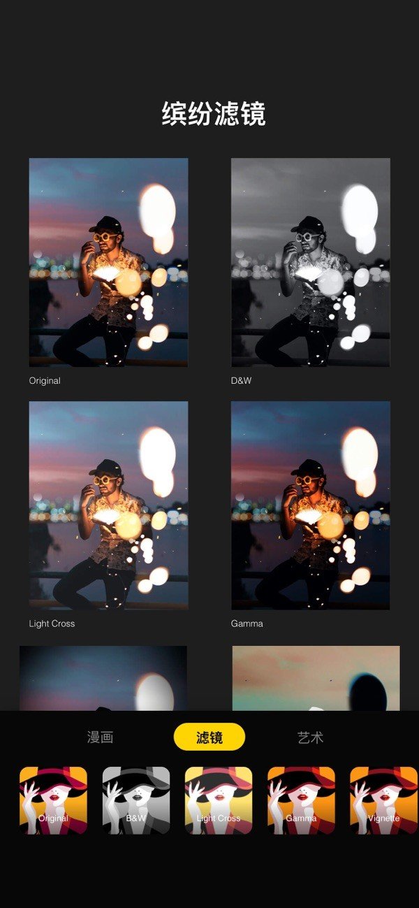 1、可以使用大量滤镜,各种流行的都可以在这里获得,让每一个滤镜的使用都更加有趣;
