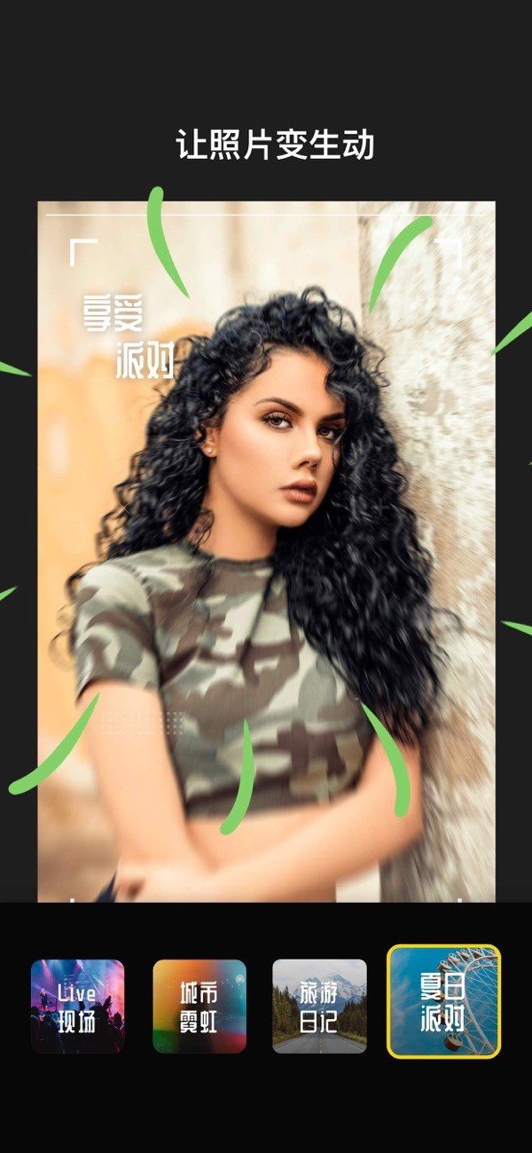 2、将照片栩栩如生,提供数十种实拍制作的视频风格,纪念你独一无二的瞬间;