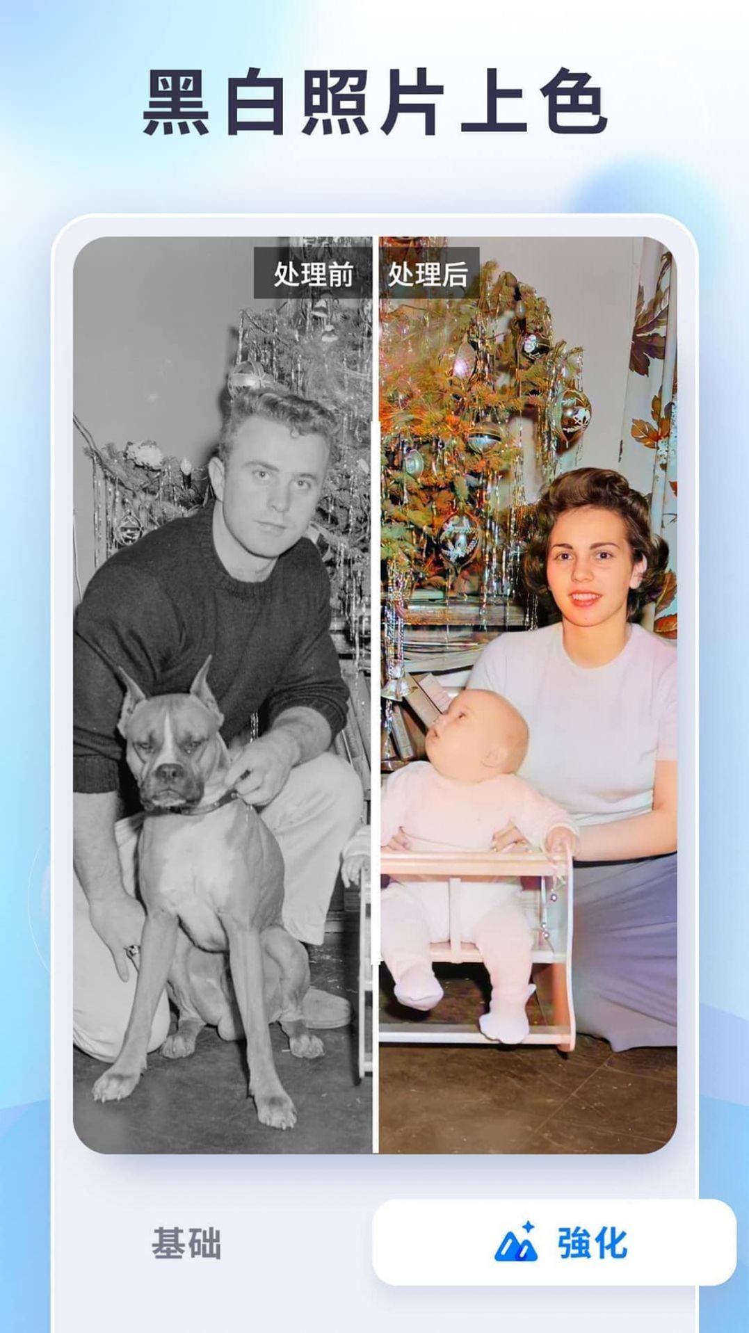 1.智能修复功能,可以自动修复照片,提高清晰度,完美还原原貌;