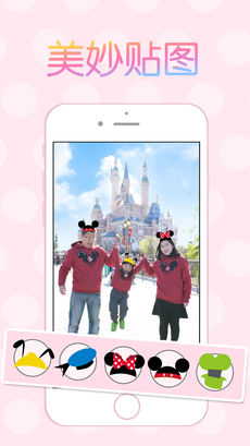 迪士尼是每个女生都向往的地方,每个女生都是公主,公主当然要回到她的城堡,在迪士尼这样美丽的地方,当然要拍各种美美的照片了。《乐拍通》是一款为用户带来迪士尼乐园在线拍摄服务的软件。本软件可以帮助用户在迪士尼乐园游玩时记录属于自己的精彩瞬间,让用户更加便捷的管理自己的账户和个人信息,方便用户的外出游玩旅行,挑选自己喜欢的拍照姿势和迪斯尼朋友进行合影留念,并将照片制作成各类个性化的精美礼品分享给自己的好朋友,与他们分享快乐。