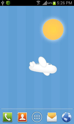 蓝蓝的天空飘着几朵白云,让人感觉那么的无忧无虑。感受到一个新的晴天,新的希望的一天。晴朗的天空挂着一个太阳。还有一架在蓝天与白云中飞翔的飞机。这个情景是多么的平静。一个很适宜做手机桌布的壁纸。