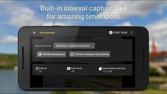 4、内置定时曝光:惊人timelapses(连括号内/ HDR timelapses的)和时间控制图片系列;