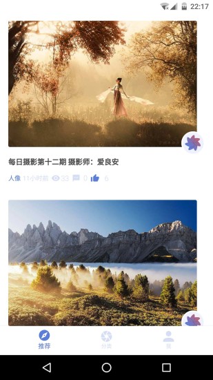 随时了解你关注的摄影师的作品动态,每天海量的国内外摄影大作精选,时刻update你的摄影灵感;