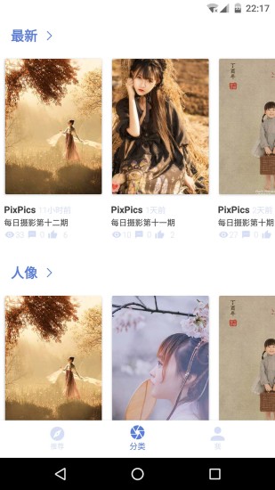 作为一名专业的摄影爱好者,我们需要将自己的作品展示出来,才能知道自己拍摄还有哪些不足。这不仅能知道拍摄的不足,有机会还能将作品版权给出售。《PixPics》是一款专为摄影爱好者打造的高品质服务社区软件。通过这款软件,你可以将自己的摄影作品上传,让别人来欣赏,还可以查看别人的摄影作品,来寻找灵感。