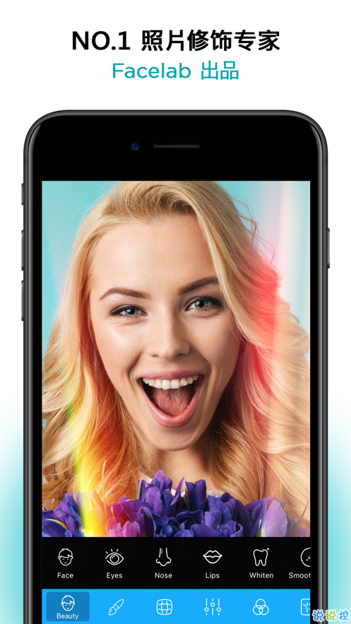 从皮肤、嘴唇、微笑、眼睛、鼻子、脸型等方面调整照片,展示出最完美的自己。