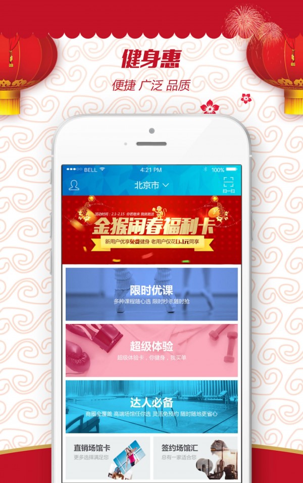 这款软件中的会员卡能帮助我们跨省、市使用,非常方便,即便因为工作的变动一样能在异地轻松训练。这健身惠app是一款健身app应用,一卡健身通全城!下载安装健身惠app就可以任选场馆及健身课程。更多样、更优惠、更专业的健身服务就在健身惠!立即下载注册就有意外好礼赠送!