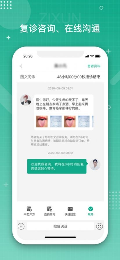 2.支持多种不同的问诊方式,可以在线发图片、视频等,在线沟通非常的方便;