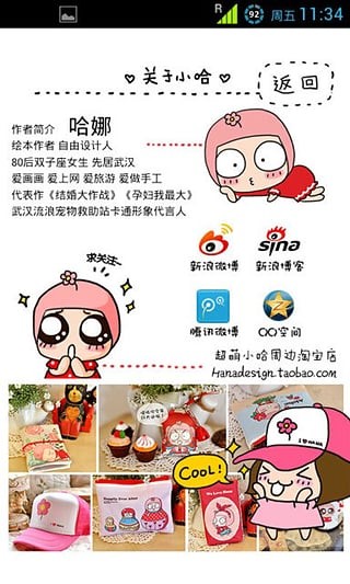 4.喜欢的朋友欢迎您关注哈娜的微博哦,小哈周边淘宝店也有各种可爱周边供您挑选!