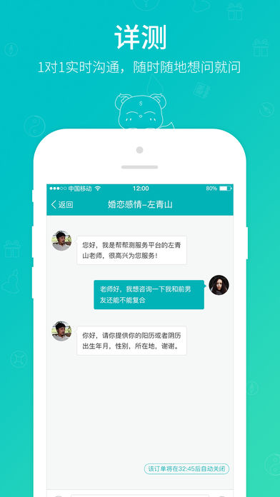 预测:包含婚恋感情、八字合婚、事业财运、命运详批、流年运势、健康孕育、升学求学等项目,帮你把握运势发展,做更好的自己;