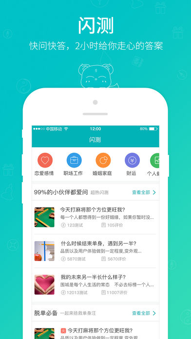 《帮帮测算命占卜》app是领先的周易命理咨询服务app,集八字算命,算卦占卜、宝宝起名,择吉,风水调理于一体,汇集了精通生辰八字算命、六爻占卜、手相面相、紫微斗数,奇门遁甲,梅花易数等各类术数的权威易学老师;