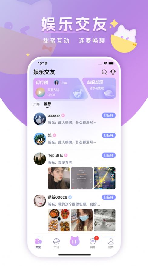 3、提供同城交友、兴趣社区交友等功能,方便用户以各种方式结识新朋友;
