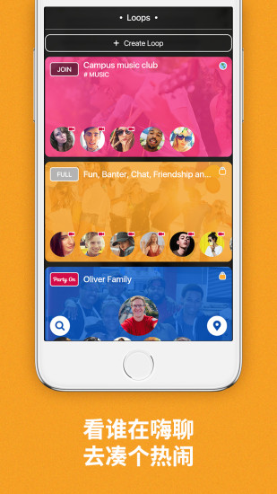 现在越来越多的人都更喜欢宅在家里,你也喜欢家里蹲吗?在家里该怎么交朋友呢?来Loops就能轻松帮你找到你附近的人。《Loops》是款社交类的软件;该软件可通过轻轻一点就可打招呼附近全部的人,在软件上可创建一个或多个小组并且和你的挚友进行畅聊,你也可取别人的小组进行嗨聊互相交友。