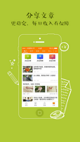 6、排行榜实时更新,分享榜,阅读榜,点赞榜,收入榜让您分享更有目标;