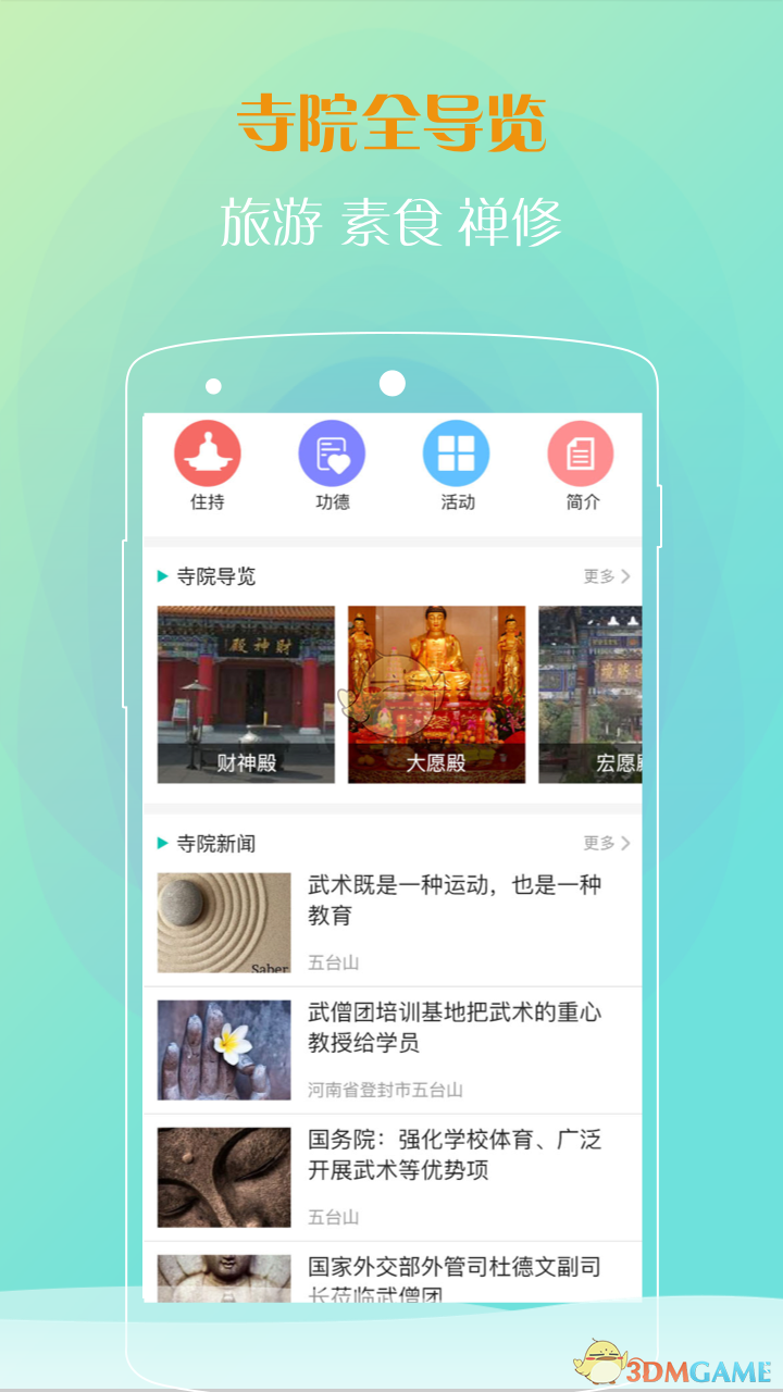 亮点六:千家寺院,在线做功德积福报;前沿禅修资讯、圣地旅游攻略。