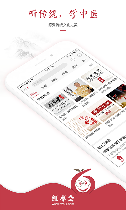 红枣会是中医和传统文化领域的知识分享平台,线上有app,线下有社群,我们在一起听传统学中医,感受传统文化之美。