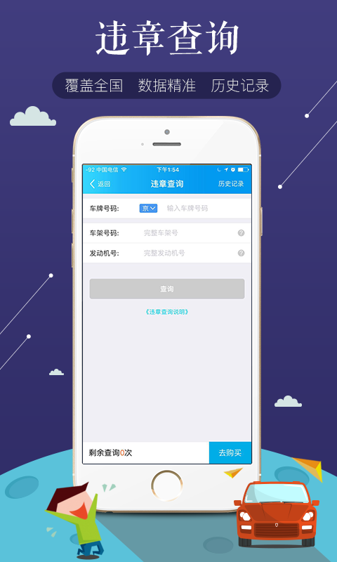 1、违章查询:面向车务商家的专业违章查询工具,便捷商家的违章服务办理;