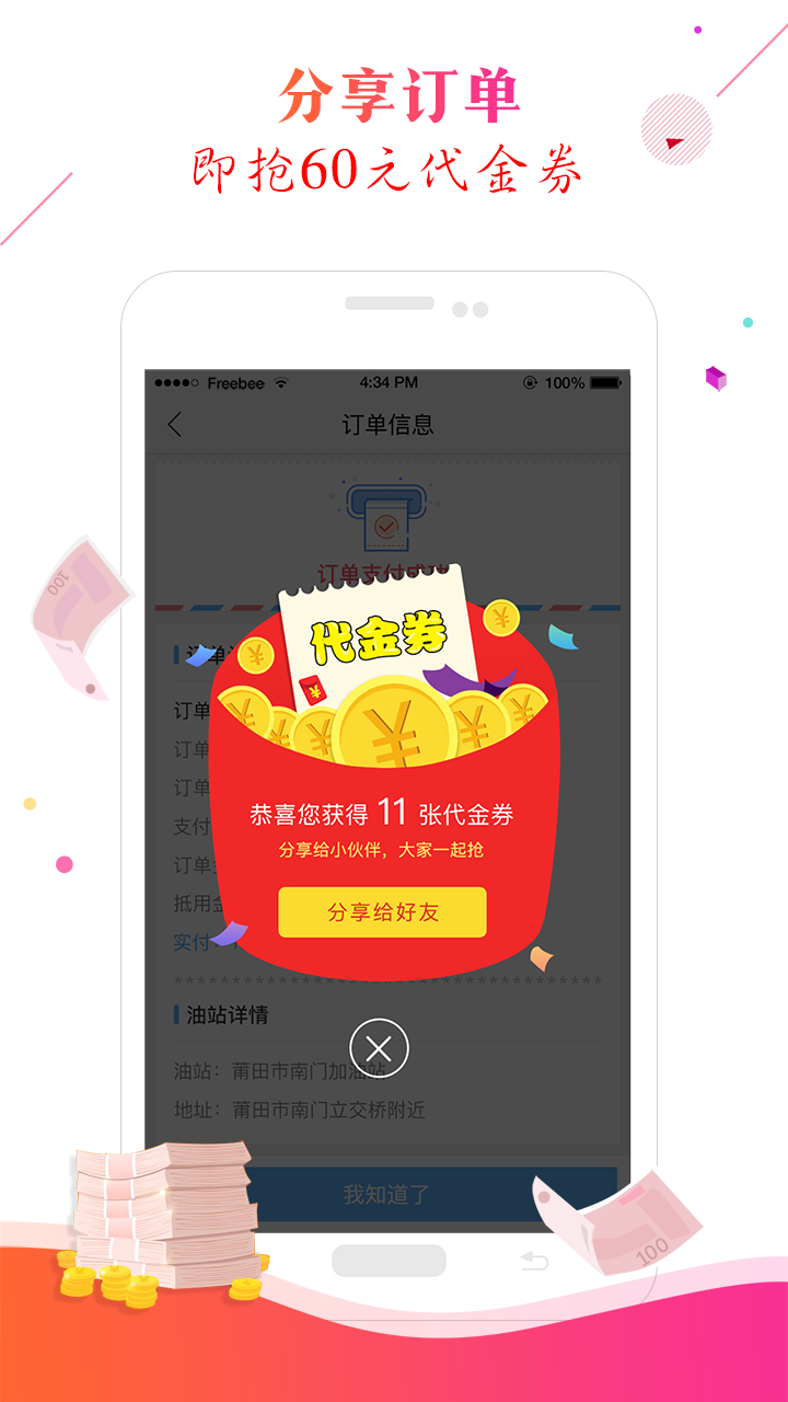 3、优化付款完成之后的交互体验,自动弹出代金券分享界面;