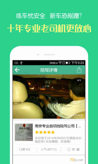 2、陪练分类:定期发布+人气指数,让您在轻松找到优质陪驾解决开车苦恼;