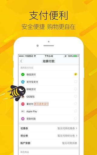 【便捷支付】微信支付、支付宝、货到现金付款,任你挑选,怎么方便怎么来。