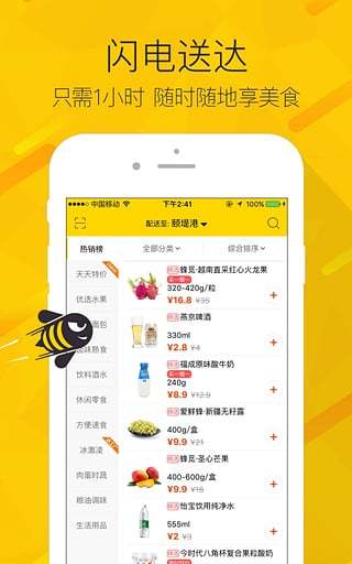 许多食物都需要快速吃完或者用于冰箱冷藏。但有时特意跑过去再跑回来还没有东西装,实属会有些麻烦。我们可以用外卖,外卖极速上门就在《爱鲜蜂》!为你提供外卖速送服务,在这里你可以购买众多种类的零食、水果、蛋糕等鲜食商品,一键下单,一小时之类就送到你的手中!