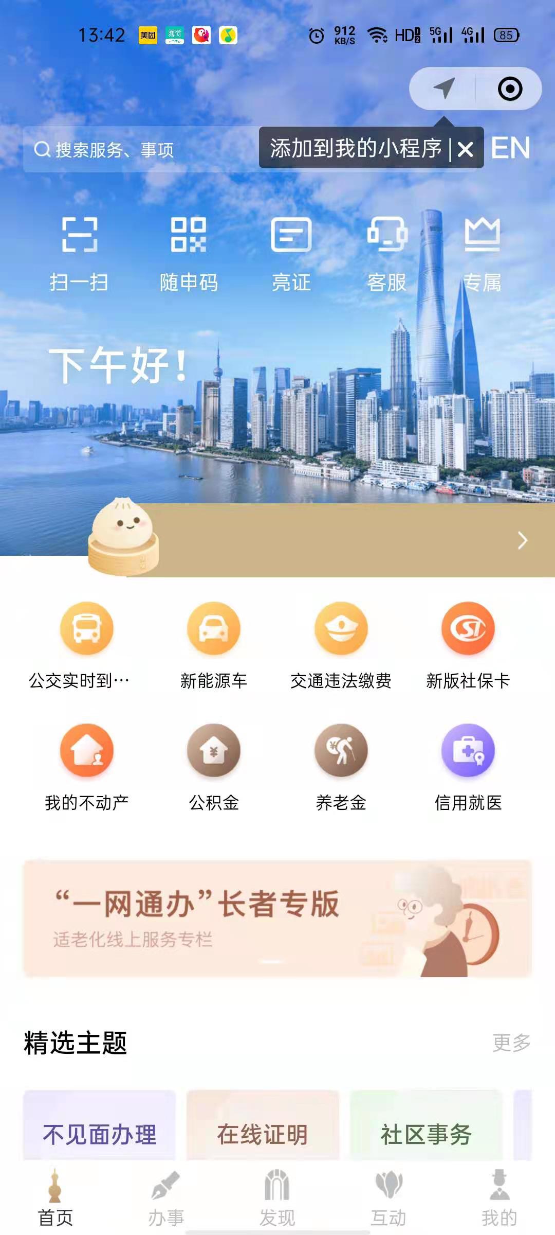 上海发布“微信最新上线办事查询类服务功能”。目前,其功能包括电子监控、交通违章记分、交通卡余额、出入境网上预约、公积金、婚姻登记、养老保险和医疗保险、路况、空气质量、上海天气、公交车实时到站等,只需点击小布微信界面左下角的“市政大厅”,点击相关栏目即可查询。