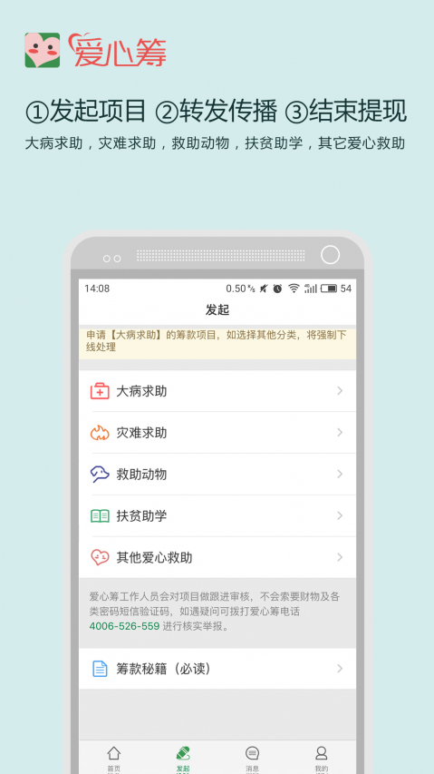 2、轻松发起,让努力自救的患者更幸运,只需三步: