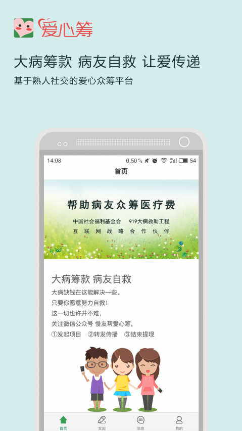 1、专业医疗筹款,基于熟人社交的爱心众筹;