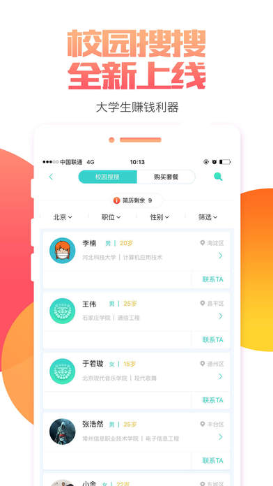 e兼职用户均为在校大学生,他们有着认真负责的工作态度,良好的知识储备。