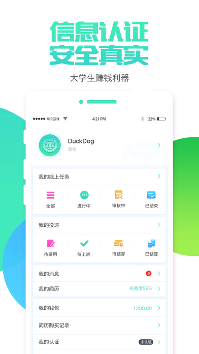 6、我的钱包:学生可以通过我的钱包将兼职所得来的工资提现到自己的支付宝;