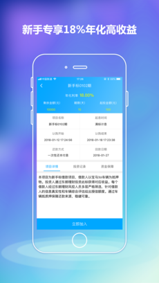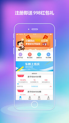 新用户注册就送998元红包,专享100元起投及18%年化收益的新手产品;