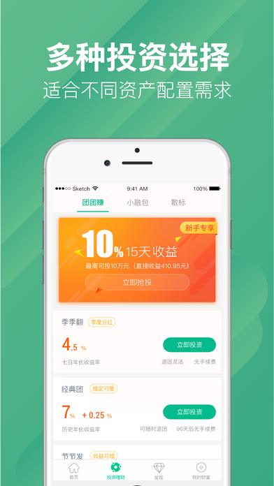 零钱理财:每一分钱都可投入“团团赚”中产生收益,实现真正的零钱理财